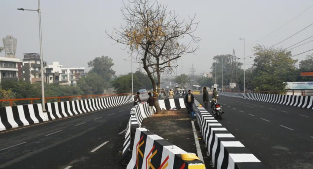 If opened in its current condition, it will become Delhi’s third flyover where vehicles must maneuver around standing trees.
