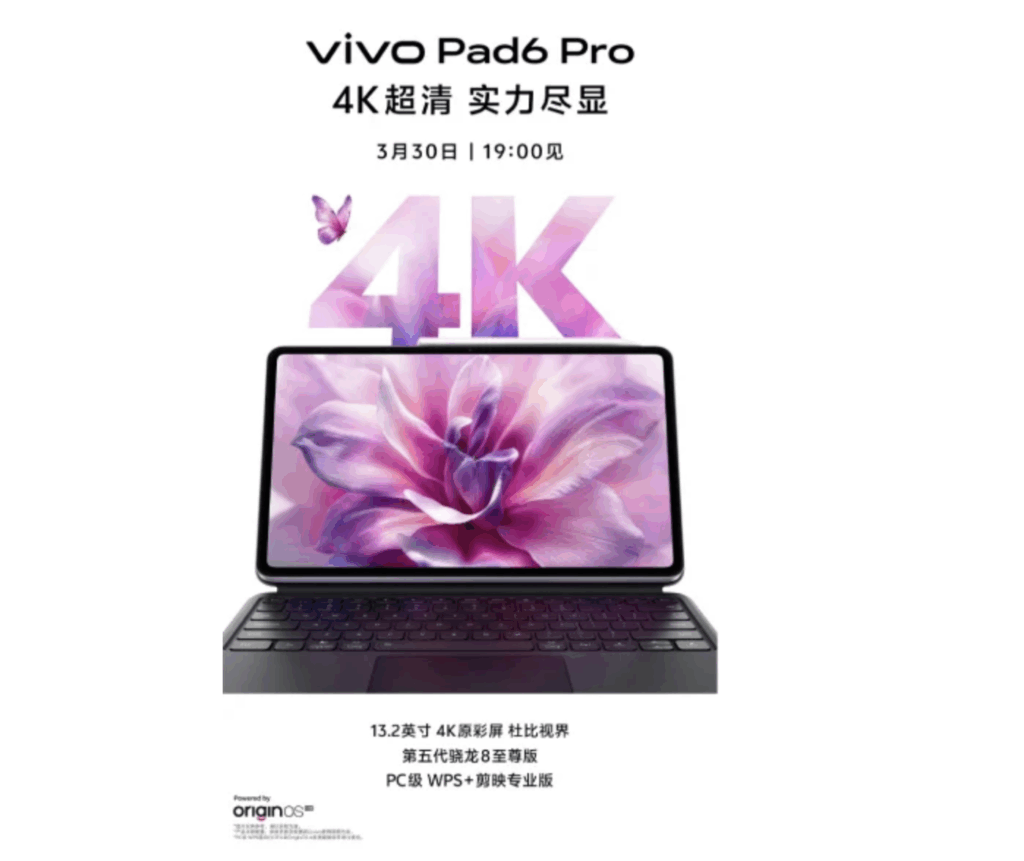 Vivo will launch the Vivo Pad 6 Pro on March 30 alongside new smartphones. Positioned as a productivity tablet, it features a 13.2-inch 4K display, Snapdragon 8 Elite Gen 5 chip, and bundled PC-grade apps. Expected specs include a 144Hz display, large battery, and fast charging, with global availability likely but not yet confirmed.
