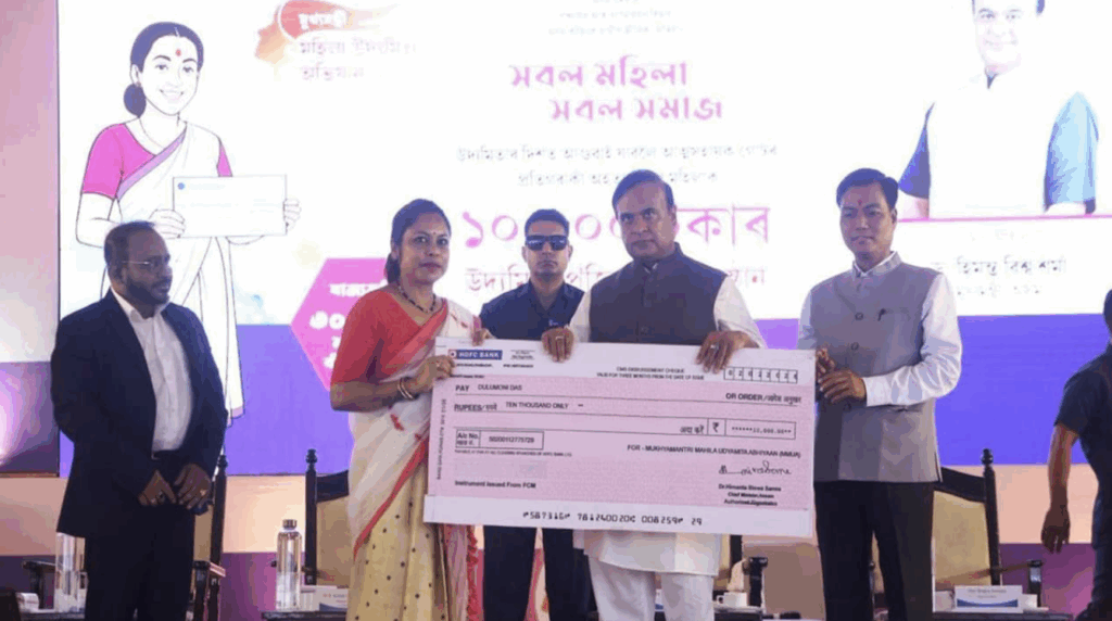 Assam Chief Minister Himanta Biswa Sarma launched the distribution of seed capital to women under the MMUA initiative at an event in Boragaon, Guwahati. At the program, 5,155 women from the Jalukbari constituency received cheques of ₹10,000 each to help them start small businesses.